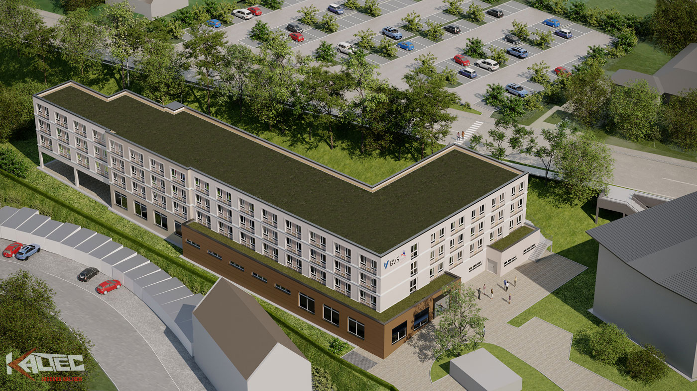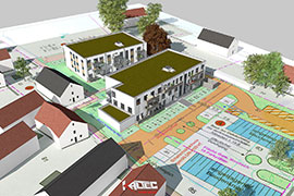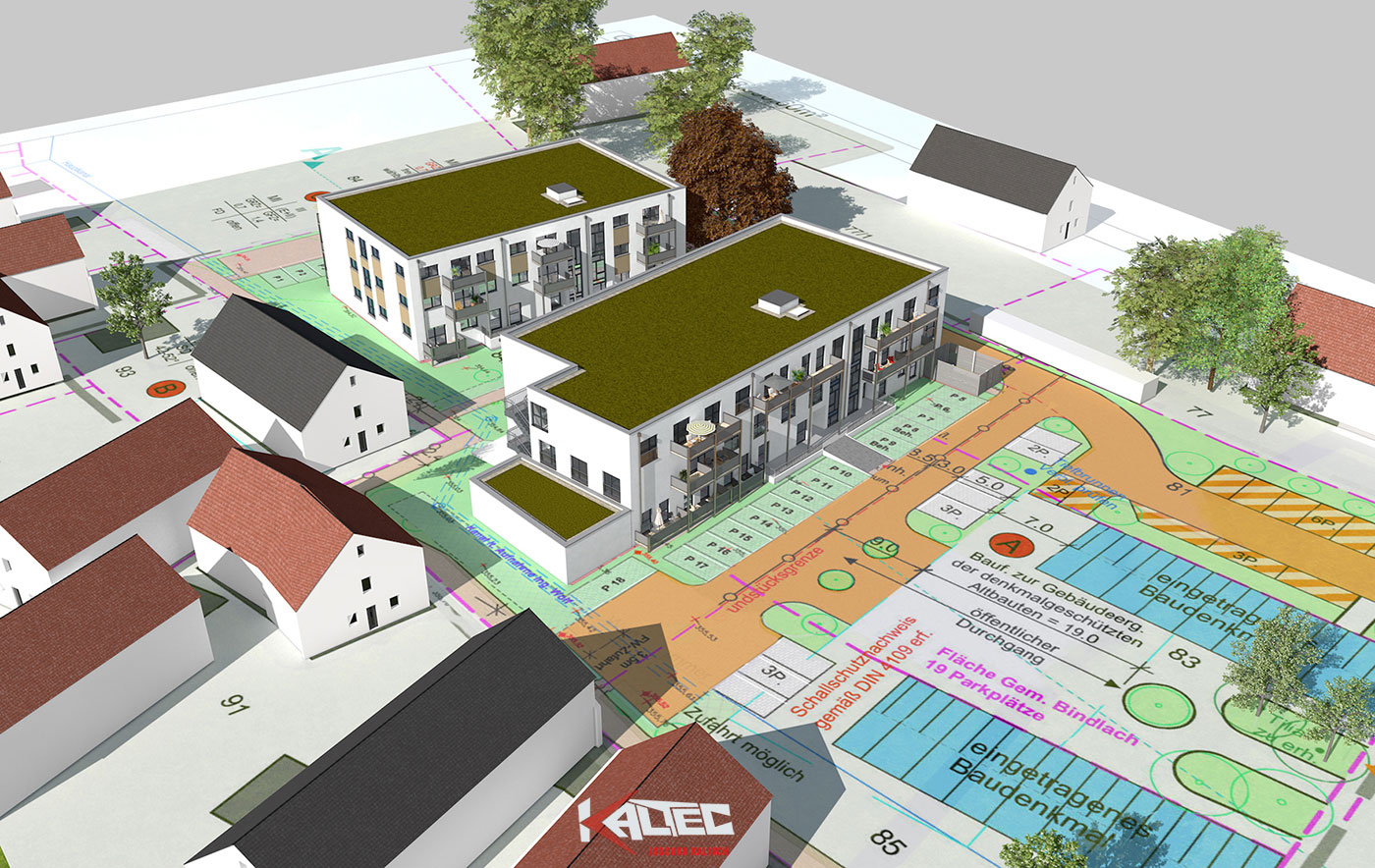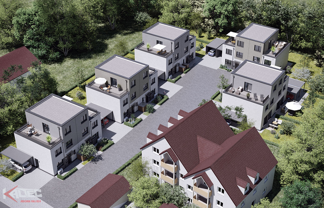 Zu unseren klassischen Leistungen zählt die Erstellung von 3D-Lageplänen und Vogelperspektiven.